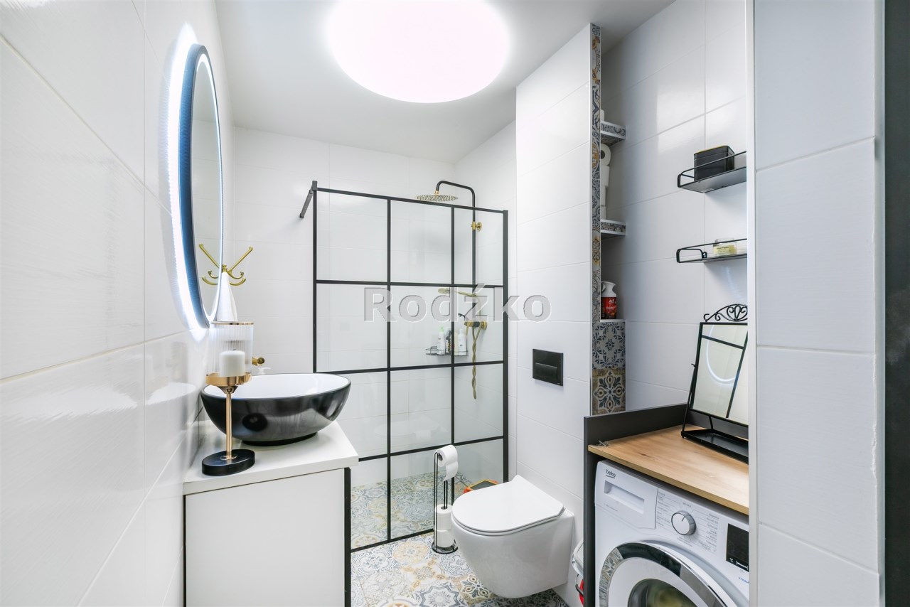 | Wyposażenie łazienki | lustro, prysznic, umywalka, WC |