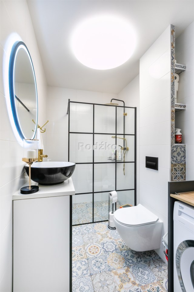 | Wyposażenie łazienki | lustro, prysznic, umywalka, WC |